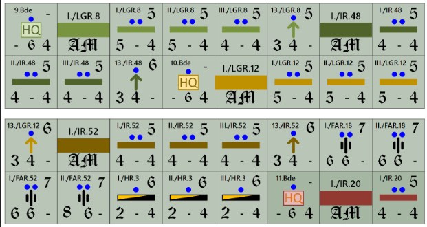 The mechanics put a focus on command and control, only allowing forces in command with one another to cooperate or concentrate fire. Each SP will be approximately 100-250 rifles. Turns are 30 minutes lasting from 0630 to 1400.