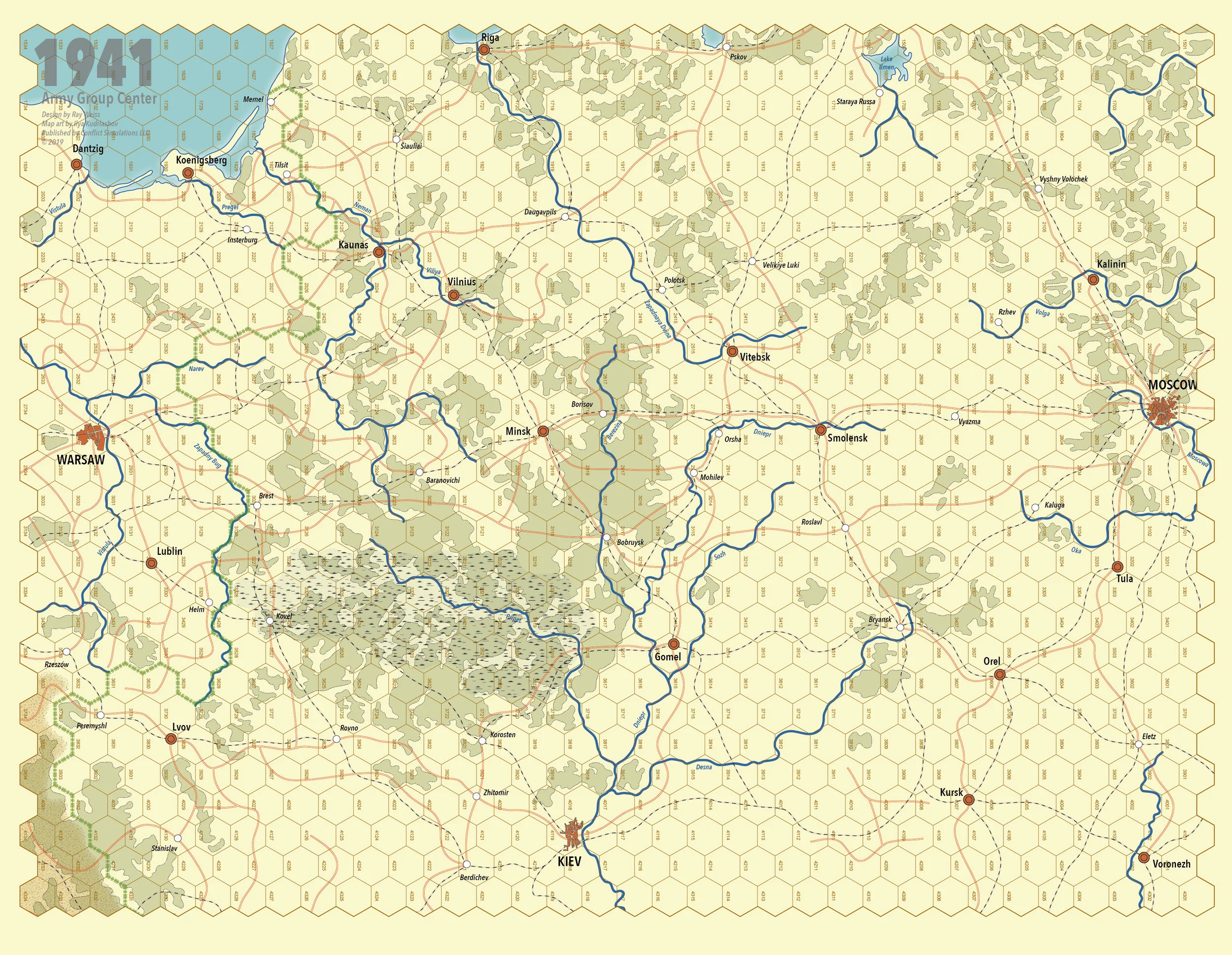 Army Group Center covers Von Bock’s relentless drive on Moscow. Logistics must be maintained as the German army advances while the Soviets must stem the flow of Panzers as best as possible. The German player has the choice of sending a Panzer Army south as Hitler ordered historically, or keep them with AGC as the generals wanted in order to take Moscow.